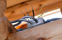 Висококваліфіковані працівники компанії «ДеревоДім» здійснюють якісний монтаж електропроводки, який повністю відповідає техніці безпеки. Завдяки цьому, наші дерев’яні будинки затишні та надійно захищені від пожеж.