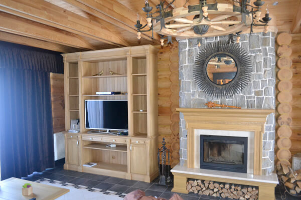 Стиль інтер’єру «шале» ще називають стилем мисливського будинку, розташованого високо в горах. Тому, ключовим елементом будинку зі зрубу в стилі «шале» є камін.