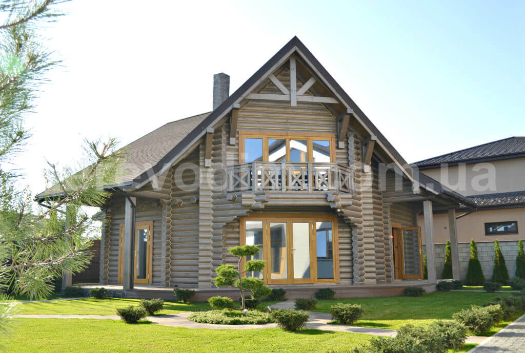 Окрасою лазні стали добротні дубові вікна і двері, а також балкон, виконаний із бруса квадратного січення.
