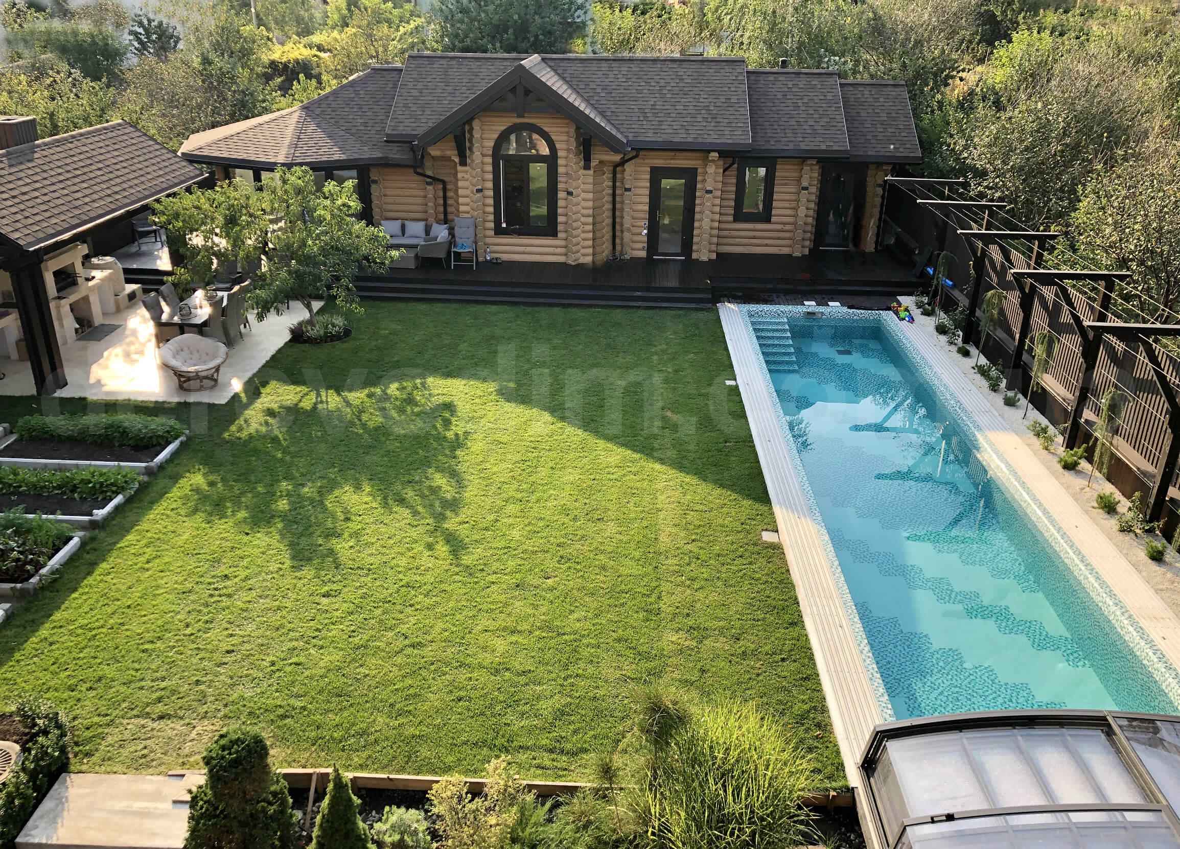 Будинок зі зрубу являє собою стильний архітектурний ансамбль, де всі елементи та деталі гармонійно доповнюють одна одну.