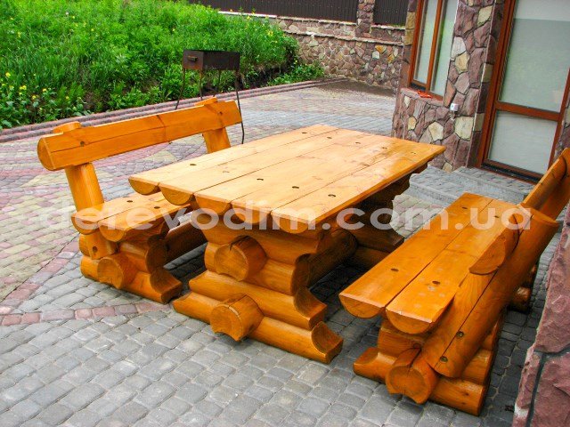 Дерев'яні столи і лавки з оциліндрованого брусу додадуть відчуття казки та загадковості вашому зеленому куточку а неповторна енергетика дерева не залишить байдужими навіть найвибагливіших поціновувачів.