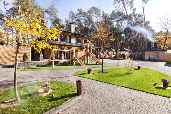 - Места для отдыха и развлечений: беседка, бассейн, игровая площадка;