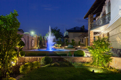 Иногда, чтобы подчеркнуть красоту деревьев или других растений, используемых грунтовые прожектора, а для освещения клумб и фонтанов - наземные.