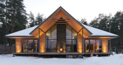 В современных домах в стиле шале все больше используются стеклянные поверхности. Это дает возможность владельцам наслаждаться природой и пейзажами. Поэтому стоит позаботиться о качественных стеклопакетах, которые способны выдержать любые климатические условия но не будут пропускать холод.