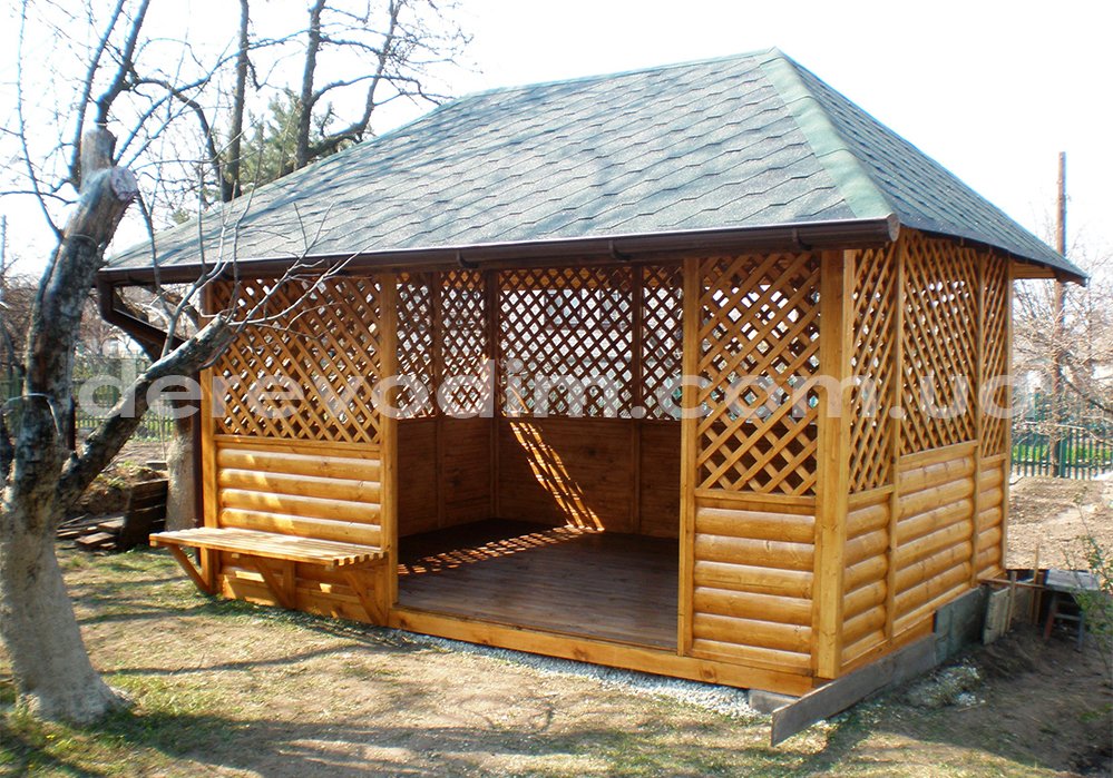 Компания «ДеревоДом» предлагает Вам беседки из натурального дерева для дачи, сада и парка.
