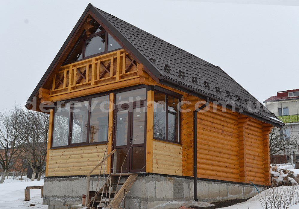 редлагаем Вашему вниманию компактный деревянный дом из оцилиндрованного бревна. Такое здание станет хорошим вариантом для отдыха и постоянного проживания маленькой семьи или пары преклонного возраста. Стоимость такого здания не будет превышать стоимости однокомнатной квартиры.