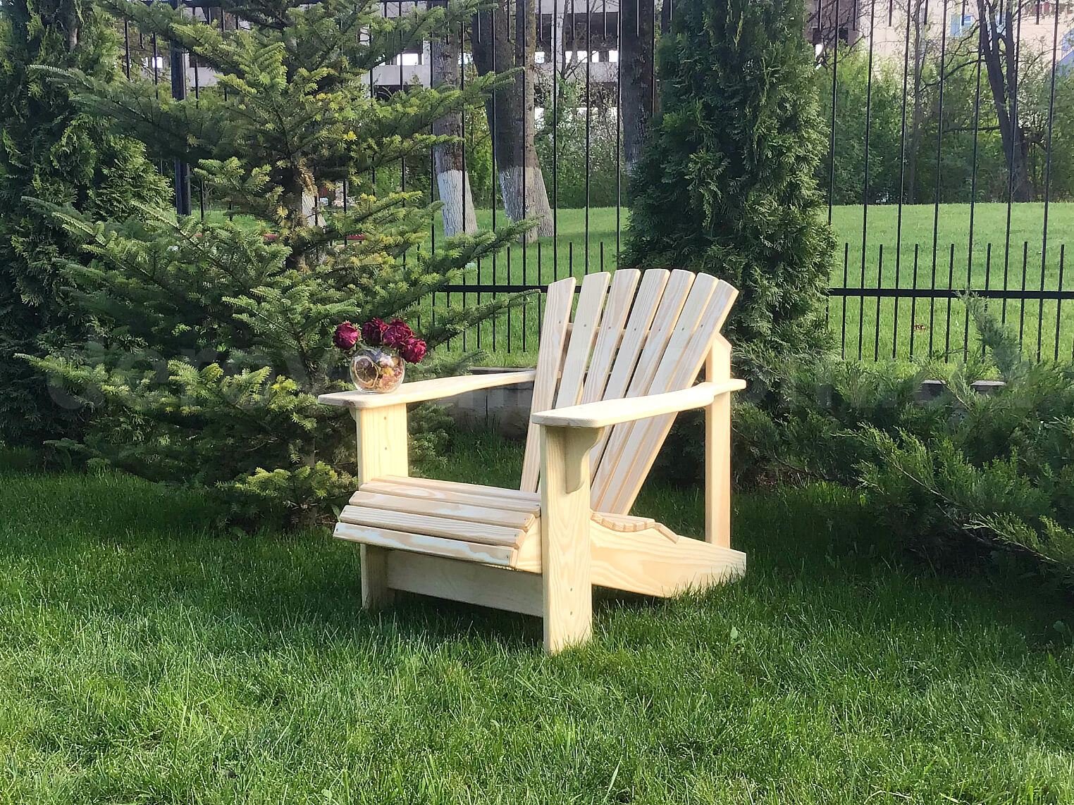 На фото, вашему вниманию, представлен современный садовый фыгурний деревянный стул с короткой спинкой, что изготавливается из экологически чистого материала – древесины сосны.