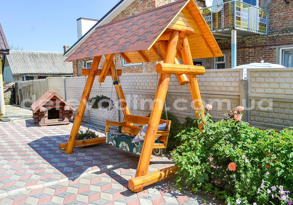 Компания «ДеревоДом» редлагает Вам добротные деревянные качели из оцилиндрованного бревна, удобные в использовании и достаточно мобильные, чтобы быть перенесенными в случае, если вы решили сменить обстановку в своем дворе.