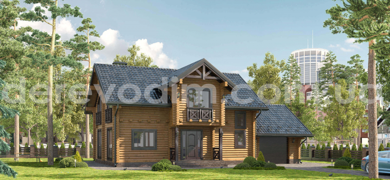 Проект двухэтажного дома из дерева 16х10 м №1-20