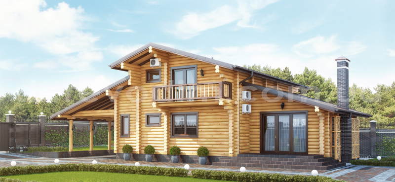 Проект жилого дома из оцилиндрованного бревна №1-23