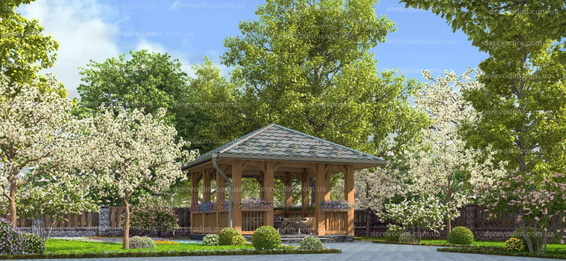 Такая беседка несомненно станет центральным местом семейного отдыха.